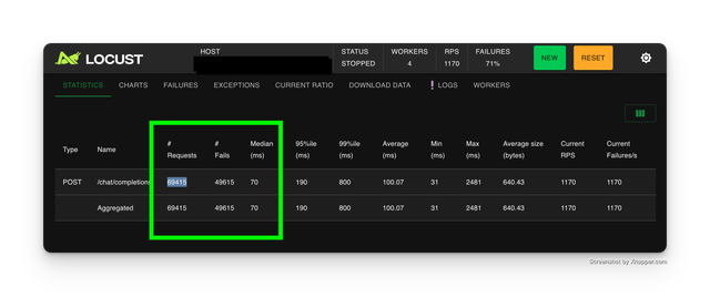 - The remaining requests fail because the endpoint exceeds it's 10K RPM quota limit - from the LLM API provider